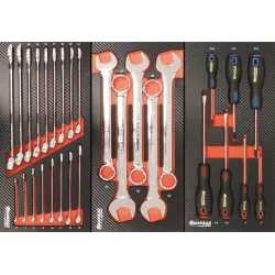 Module réf.09872 (17pcs) •17 clés mixtes (6 à 22mm) Module réf.09871 (5pcs) •5 clés mixtes (23 à 27mm) Module réf.09880 (7pcs) •7 tournevis classiques (4 plats + 3 PH)